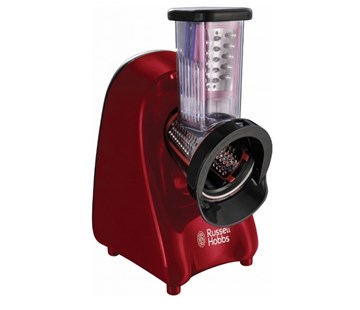 Součástí vybavení jsou 3 vyměnitelné nástavce, které se hodí pro jemné strouhání, hrubé strouhání nebo pro krájení potravin na plátky. Samotné použití je velmi snadné. Zvolené suroviny stačí umístit do plnicího otvoru a s pomocí pěchovadla je jemně je zatlačit směrem ke kotoučům. Nastrouhané nebo nakrájené suroviny putují z elektrického struhadla Russell Hobbs 22280-56 směrem ven. Pod přístroj tedy stačí umístit vhodnou nádobu. Součástí spotřebiče je úložný prostor pro vyměnitelné kotouče. Nástavce lze mýt v myčce nádobí. |