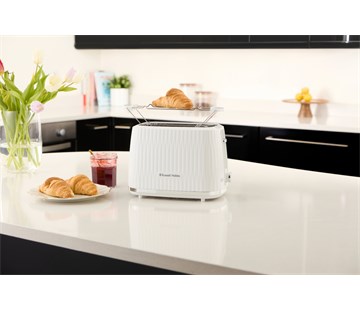Topinkovač od Russell Hobbs je navržen tak, aby se v kuchyni skvěle vyjímal a zároveň dokonale opékal ty nejkřupavější plátky pečiva. S chromovanými detaily a elegantním strukturovaným povrchem v bílé barvě je dokonalým doplňkem každé stylové kuchyně. Po skončení přípravy stačí jen vysypat vyjímatelný tác na drobky. Manipulaci usnadňuje i přívodní kabel o délce 61 centimetrů. |