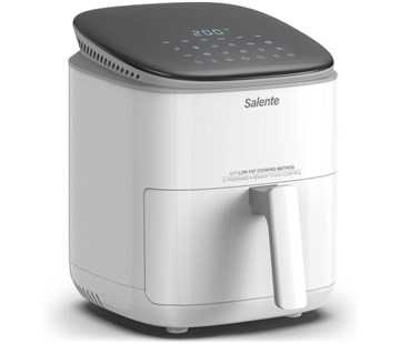 | V horní části horkovzdušné fritézy Salente Airfit-Wh naleznete LED displej s dotykovým ovládáním. V několika krocích tak nastavíte vše potřebné. Vybírat můžete ze 12 automatických programů, které jsou speciálně navrženy pro přípravu masa, ryb, jogurtů, nejrůznějších příloh ale také pro sušení ovoce a zeleniny nebo rozmrazování hotových jídel. Teplotu lze nastavit v rozmezí od 30 do 200 °C. Nebo využijte funkci časovače. Po uplynutí nastaveného času se spotřebič automaticky vypne. |  |