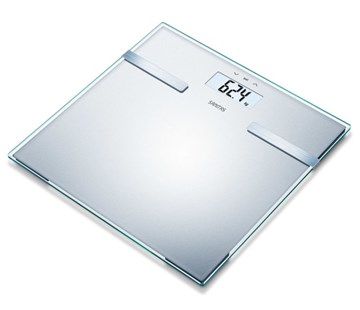 Skleněná diagnostická váha, LCD displej, hmotnost, tuk, voda, svalovina, kosti, 5 úrovní aktivity, 180kg/100g 0,1%, 10 pamětí, automatické rozpoznání uživatele