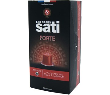Kapsle Sati Forte, směs Arabiky z Latinské Ameriky, Afriky a Asie s nádechem Robusty. Intenzivní káva s výjimečnou perzistencí v ústech. Hladké tělo s bohatými tóny ztělesňující espresso v jeho nejčistší podobě. Intenzita 10, Balení 104 g (20 x 5,2 g), Kapsle - hliník