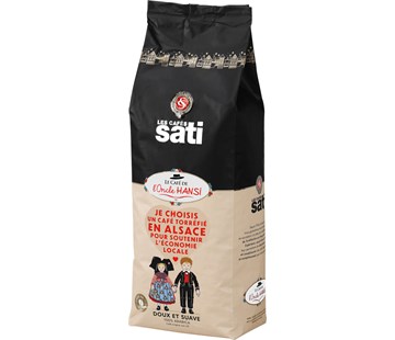 Ušlechtilá zrna Grands Crus 100% arabica z Latinské Ameriky a východní Afriky ! Sametová, voňavá, lehounce kyselá, přesto se sladkým a jemným charakterem, vyvážená a kulatá chuť v ústech. Vyladěná káva od 5násobného mistra Francie v degustaci kávy. To je alsaská káva SATI s tradicí od roku 1926.