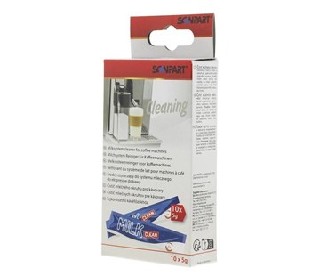 ScanPart Čistič mléčných okruhů 10ks. Odstraňuje mléčný kámen a zabraňuje opětovné tvorbě mléčných kamenů. Použití: Vložte obsah tyčinky do nádoby na mléko a nechte protékat teplou vodu. Poté propláchnete vodou. Obsah: 5 g. Obsah balení: 10ks.