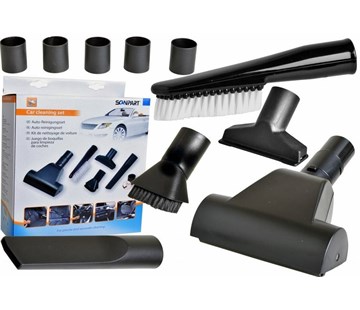 Čistící sada do auta O32 + 35mmObsah balení soupravy na čištění automobilů:- 1x Mini turbo kartáč,- 1x Nástavec na snadné čištění čalounění automobilu,- 1x Univerzální kartáč, s kruhovým kartáčovým kroužkem na důkladné vyčištění ventilačních mřížek,- 1x Prachový kartáč s velmi dlouhými vlasy na čištění plastového interiéru.- 1x Úzká plochá hubice na bezproblémové čištění všech těžko přístupných míst.- Adaptér 5x 32mm / 35mm- Vhodné pro: AEG, Bosch, Electrolux, Miele, Moulinex, Nilfisk, Panasonic, Rowenta, Siemens atd.
