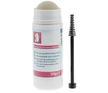 ScanPart Čistící tyčinka žehlící plochy. Čistič žehlící plochy odstraňuje skvrny a nečistoty z žehlicí plochy žehličky. Pokud jsou syntetické tkaniny a otisky žehlené příliš horké, na žehlící ploše tají malé kousky různých látek a prachu. Tyto malé kousky nakonec tvoří skvrny na žehlící ploše žehličky. Tvrdá voda bohatá na vápno nebo použití škrobu také způsobují skvrny na spodní straně žehličky. Proto je důležité žehlící plochu pravidelně čistit. Čistič žehlící plochy odstraňuje skvrny a nečistoty z žehlicí plochy žehličky. Pomocí speciální kartáče vyčistěte otvory na sponu žehličky. Obsah: 50 g. Kartáč na čištění.