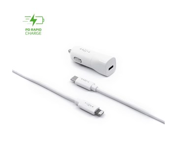 set nabíjecího adaptéru do automobilu s podporou rychlého nabíjení a USB-C kabelu • USB-C port s podporu Power Delivery (PD) • koncovky kabelu: USB-C/Lightning • MFI certifikace (made for iPhone, iPad, iPod) • celkový výstup 18 W • kompaktní rozměry • určena pro síťové zásuvky EU • výrobek splňuje všechny zákonné a bezpečností normy pro ČR