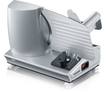 elektrický kráječ potravin • celokovové provedení • výkon 180 W • nůž z nerezové oceli (průměr 190 mm, odnímatelný) • jemnost plátků nastavitelná od 0 do 15 mm • podsvícený spínač on/off • nakloněná pozice potravin pro optimální výsledky krájení • speciální výměnný kotouč