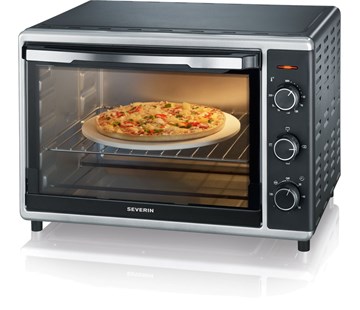 Horkovzdušná minitrouba Severin TO 2058 s nerezovým topným tělesem, s výkonem 1800 W, o objemu pečicího prostoru cca 42 l.