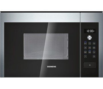 Vestavná mikrovlnná trouba SIEMENS HF 15 M 564 má krásné černo-nerezové provedení a objem 20 l. Otočný skleněný talíř má průměr 25,5 cm, díky kterému přichystáte své oblíbené pokrmy během krátké chvíle. Vybrat si můžete z pěti stupňů výkonu, až do maximálního výkonu 800 W. Mikrovlnná trouba SIEMENS HF 15 M 564 disponuje čtyřmi rozmrazovacími a třemi varnými programy s nastavením hmotnosti.