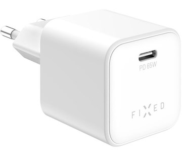 Síťová GaN nabíječka FIXED Mini s USB-C výstupem a podporou PD, 65W, bílá