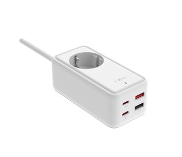 prodlužovací nabíjecí GaN adaptér • celkový výkon 65 W • GaN III technologie - menší rozměry nabíječky s větší efektivitou nabíjení • pro síťové zásuvky EU • zásuvka a čtyři nabíjecí porty - 2x USB-C a 2x USB-A • ideální pro nabíjení notebooků, tabletů a smartphonů • výrazně menší zahřívání nabíječky než u klasických adaptérů • kompaktní rozměry • LED dioda indikující zapojení adaptéru do zásuvky • splňuje všechny zákonné a bezpečností normy pro EU