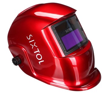 Svářecí kukla samostmívací WELDING MASK 2, červená  SIXTOL; ochrana obličeje a očí před jiskrami, roztřikem tavenin, ultrafialovým a infračerveným zářením a škodlivými plyny; z odolného ABS plastu; certifikovaný samostmívací filtr; Intenzitu stmívání filtru lze nastavit; vyměkčené hlavové pásky