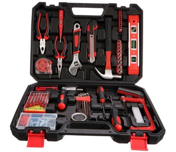 Sada nářadí SIXTOL HOME 110; V sadě naleznete základní elektrikářské nářadí, ráčnu, svítilnu, kleště, kladivo, metr, vodováhu, širokou škálu bitů a hlavic a mnoho dalšího; součástí je i množství užitečného spojovacího materiálu; uhlíková ocel; rozměr kufru: 43 x 31 x 8,5 cm, počet kusů v sadě: 110