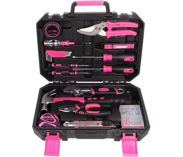 Sada nářadí HOME PINK 88 SIXTOL; Sada nářadí SIXTOL HOME PINK 88 se skládá z nářadí jako jsou kleště, imbusové klíče, kladivo, šroubováky a další; součástí je i množství užitečného spojovacího materiálu; ve skladném praktickém černo-růžovém kufříku; uhlíková ocel s pochromováním; rozměry: 34x24x8 cm