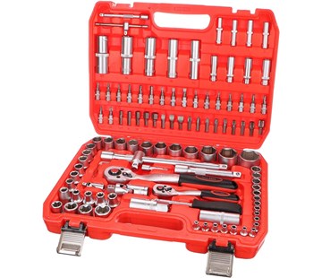 Gola sada CRV 108 profi - záruka 6 let SIXTOL SIX; do náročných pracovních podmínek; Precizní zpracování ocelových součástí z CrV oceli zajistí dlouhou životnost produktu; hlavice a ráčny jsou z ušlechtilé CrV 50BV30 oceli vysoké kvality; v odolném plastovém kufru s kovovými panty a přezkami