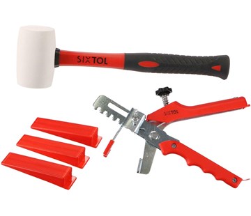 Sada pro nivelaci dlaždic LEVEL SYSTEM STARTER 1 SIXTOL; sada nástrojů pro vyrovnání obkladů a dlažeb; obsahuje 100 kusů nivelačních klínků, kleště a gumovou paličku; spony nejsou součástí sady; Rozměry klínků: 90 x 21 x 15,5 mm; Max. rozevření kleští: 70 mm; pro obkladačky od 4 - 15 mm