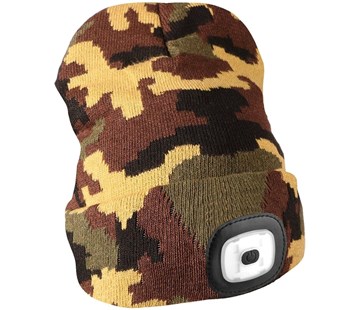 čepice s čelovkou • 4 LED žárovky • celková svítivost 180 lm • 3 režimy intenzity osvětlení (100, 75, 50 %) • doba svícení až 4 hodiny • dobíjení USB konektor • plné nabití zhruba za 3 hodiny • lze vyprat • univerzální velikost (obvod hlavy 58 cm) • odrazka • materiál (73 % bavlna, 27 % polyester)