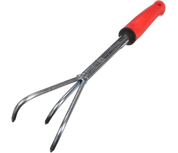 Ruční kultivátor, délka 360 mm, ergonomická rukojeť SIXTOL; na provzdušňování a kypření zeminy v záhoncích; z robustní oceli, takže nehrozí jeho ohnutí; Ergonomická pogumovaná rukojeť zajistí pohodlný úchop; z korozivzdorné uhlíkové oceli; červená barva pro dobrou viditelnost v trávě; délka: 360 mm