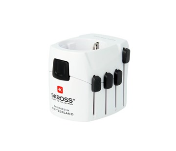 SKROSS 3-pólový adaptér, propojí spotřebiče se všemi uzemněnými zásuvkami třídy I a II, typy výsuvných vidlic: Velká Británie, Švýcarsko, Itálie, Austrálie, USA, AC 100V-250V/6,3A max., ve spojení s PA30 možno připojit spotřebiče se zástrčkami typu Velká Británie, Švýcarsko, Itálie, Austrálie, USA