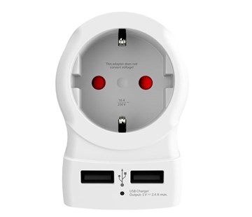 SKROSS PA28USB cestovní adaptér s uzemněním, max. 7A, integrovaný USB nabíjecí adaptér, 2400mA, pro obyvatele Evropy, navštěvující Anglii a země s UK standardem, Schuko uzemnění zásuvky, pro všechny spotřebiče s 2- a 3-kolíkovou šňůrou, dětské pojistky, švýcarská kvalita a design.