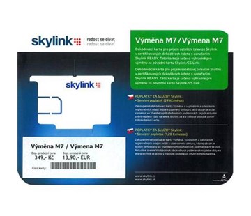 Karta pro výměnu za staré karty Skylink,CS link v systému CryptoWorks. Při registraci je nutné zadat i číslo staré karty, pokud kupující neobjednává žádný balíček placených programů je nutné zapl.serv.popl.29Kč