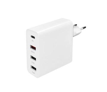Solight nabíjecí adaptér 3+1, 48W, QC3.0+PD, 3x USB-A, 1x USB-C, vstup: AC 100–240V, 50/60 Hz, max. 1,2A, výstup 1: PD USB-C DC 5V/3A, 9V/3A, 12V/2.5A, 15V/2A, výstup 2: QC3.0 USB-A DC 5V/3A, 9V/2A, 12V/1.5A, výstup 3: USB-A DC 5V/2.4A, výstup 4: USB-A DC 5V/2.4A, rozměry: 10,5 x 4,4 x 6,5 cm