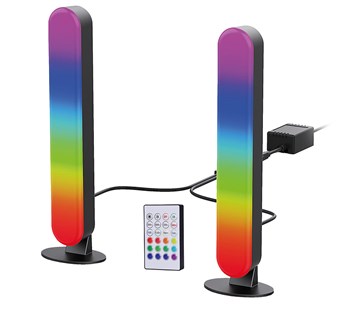 LED RGB světla k PC s dálkovým ovladačem; světla určená k herním počítačům; světelný tok max: 200lm; teplota chromatičnosti: 3000K, RGB (teplá bílá, multicolor); dálkový ovladače; zvukový senzor: světla reagují na zvuk; stupen krytí: IP20