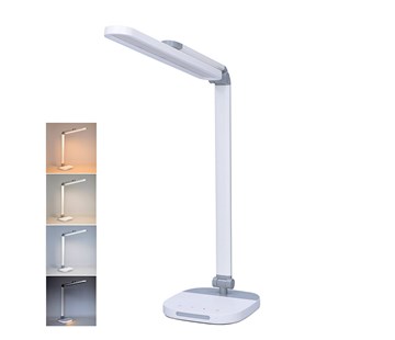 LED stmívatelná stolní lampička s nočním světélkem, časovačem a možností změny teploty světla příkon: max. 10W světelný tok: max. 800lm volitelná teplota světla (chromatičnosti): 3000K, 4000K, 5000K (teplá, neutrální a studená bílá) stmívatelná: 5 úrovní jasu zapínání,změna jasu a chromatičnosti dotykem prstu funkce časovače: po aktivaci vypne lampičku po 45min úhel svícení: 120° index podání barev: CRi>80 napájení: DC 5V; 2A (kabel součástí, adaptér není součástí) LED zdroj nelze měnit rozměr: cca 450 x 155 x 370mm délka napájecího USB kabelu: 150cm barva: bílá, šedá materiál: ABS energetická třída: G