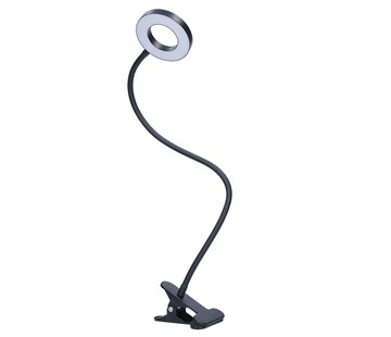 LED stmívatelná stolní lampička s upevňovacím klipem a možností změny teploty světla příkon: max. 8W světelný tok: max. 300lm volitelná teplota světla (chromatičnosti): 3000K, 4000K, 5000K (teplá, neutrální a studená bílá) stmívatelná: 9 úrovní jasu ovládání, zapínání, změna jasu a chromatičnosti pomocí ovladače na USB kabelu úhel svícení: 120° index podání barev: CRi>80 napájení: DC 5V; 2A (kabel součástí, adaptér není součástí) LED zdroj nelze měnit rozměr: cca 630 x 110 x 90mm max. rozpětí klipu: 4cm délka napájecího USB kabelu: 200cm barva: černá materiál: ABS, hliník