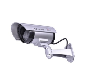 maketa bezpečnostní kamery - levná a účinná prevence trestného činu pomáhá předcházet vloupání či navodit dojem sledování při pohybu v blízkosti objektu vzhled skutečné bezpečnostní kamery, včetně kabelu LED dioda napájená bateriemi simuluje, že je kamera aktivní montáž na stěnu nebo vodorovnou plochu vhodné pro vnitřní i venkovní použití třída ochrany: IP44 instalační sada součástí balení napájení: 2 x AA (LR04) alkalické baterie (nejsou součástí) rozměry: 232 x 165 x 80mm material: ABS plast barva: stříbrná balení: krabice