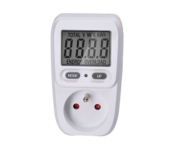 digitální měřič elektrické spotřeby • přehledný 2" (5cm) LCD displej • maximální měřená spotřeba 9999 kWh • minimální množství zaznamenávaného příkonu 2 W, maximálně 3680 W/16A • nastavení ceny za energii • 2 ovládací tlačítka • přesný výpočet ceny a měření spotřebované energie • dětská pojistka • provozní teplota 0 až + 50 °C • napájení AC 230V, 50Hz