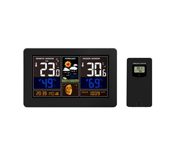 Smart Life/TYUA aplikace pro mobilní zařízení aplikace slouží k ovládání meteostanice, prohlížení grafů vývoje teplot, tlaku, vhlkostí, a ke kontrole aktuálních hodnot měření vnitřní teploty: -20°C až +60°C měření venkovní teploty: -40°C až +70°C přesnost měření teploty: -+1°C měření vnitřní a vnější vlhkosti: 20% - 95% měření atmosférického tlaku: 600 hPa/mb - 1100 hPa/mb USB nabíjecí adaptér DC 5V/1000mA paměť minimálních a maximálních dosažených hodnot teploty a vlhkosti, vnější i vnitřní možnost připojení až 3 bezdrátových senzorů (TE81S-WIFI), funkce cyklického přepínání mezi jednotlivými senzory 1 bezdrátový senzor (součástí balení), dosah 60 m ve volném prostoru předpověď počasí v 6 grafických úrovních s indikátorem vývoje ukazatelé stavu baterie pro meteostanici i bezdrátový senzor čas řízený synchronizačním systémem internetu, kalendář, fáze Měsíce, název dne indikátor vývoje teplot, tlaku a vhkostí barevný podsvícený displej 19cm (17,0 x 9,4cm) úsporný režim displeje, 3 úrovně podsvícení displeje + vypnuto rychlý a komfortní přístup k ovládacím tlačítkům na boční hraně meteostanice otvor pro uchycení na zeď, opěrný stojánek rozměry meteostanice: 20,5 x 13 x 3 cm max. barva: černá napájení: hlavní jednotka:2 x AA (LR06) baterie (není součástí balení) adaptér AC 230V,50Hz /DC 5V, 1200mA (součástí balení) senzor: 2 x AA (LR06) baterie (není součástí balení)