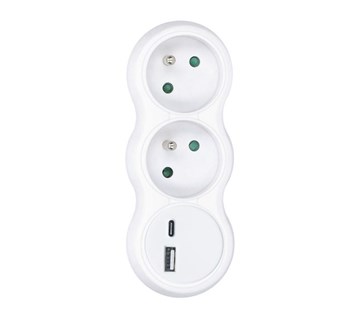 Solight rozbočka, výstup 2 x 10A/230V =>max. 16A, USB nabíjecí adaptér 2,4A max., USB výstupy 1x Typ-A + 1x Typ-C, dětská pojistka, barva: bílá
