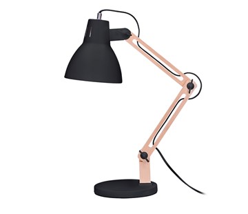 kovová stolní lampa Falun s dřevěnými rameny matná povrchová úprava zdroj: E27/25W max. (dodáváno bez zdroje) rozměry stínidla: 15,5 x 16,5cm průměr základny: 17cm délka ramen: 10 + 25 + 25cm přívodní kabel s vypínačem: 150cm materiál: kov, dřevo napětí: 230V barva: přírodní dřevo + černá