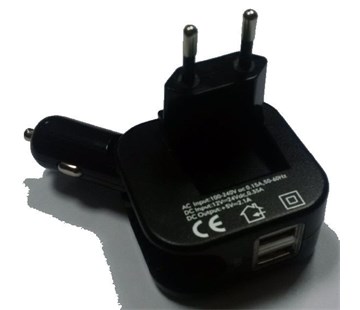 - univerzální USB adaptér pro dobíjení multimediálních zařízení v domovních zásuvkách i automobilech