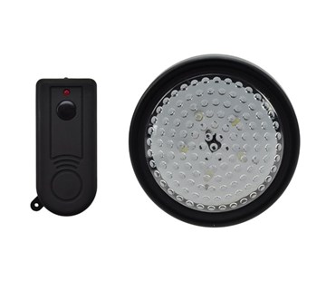 LED světélko s dálkovým ovládáním; 5 LED; dálkový ovladač + manuální vypínač; bílá barva světla; úchyt pro zavšení; výdrž baterií: 36 hodin intenzivního svícení; materiál: pogumovaný ABS plast; napájení: 3 x AA baterie (nejsou součástí); 1 x CR2032 (součástí); rozměr: 100 x 45mm