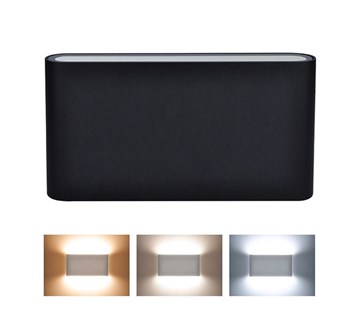 LED venkovní nástěnné osvětlení; spotřeba: 12W; světelný tok: 680lm; chromatičnost: 3000/4000/6000K; úhel svícení: 120°; užitečný světelný tok v úhlu 120°: 680lm; index podání barev Ra: >80; materiál: hliník; napětí: 175-265V AC