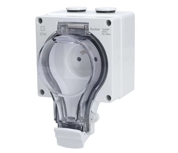 zásuvka 1x 16A, max. 3680W, šroubovací svorky; 100% chráněno proti prachu a tryskající vodě; šroubovací vstup 1x M25x1,5; včetně vodotěsné šroubovací zátky; šroubovací vstup/výstup 2x M20x1,5 včetně vodotěsných šroubovacích zátek, k propojení s dalšími zásuvkami nebo jinou elektroinstalací