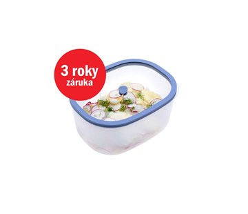 Objem dózy: 2.3 l, dvoustupňová ochrana uzavření, dóza na potraviny s BPA free plastu + skleněné víko, vhodné do myčky nádobí, mrazničky i mikrovlnky, vyrobeno ve Slovinsku
