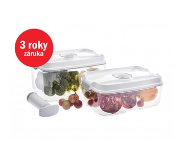 2 vakuovací dózy s víky: 1,4 a 2 l + ruční vakuová pumpa, odolný a trvanlivý tritan, 3letá záruka, vhodné do mrazáku, myčky i mikrovlnky, vyrobeno ve Slovinsku