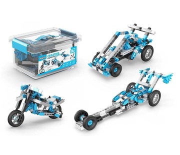 Stavebnice Maker Master 30v1 obsahuje 210 dílů a sestavíte si z nich 30 propracovaných strojů jako vesmírná raketa, lunární vozítko, zimní skútr, formule, motorka a mnoho dalších.