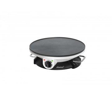 palačinkovač • průměr 32 cm • nepřilnavá teflonová deska • regulace teploty • dřevěný roztírač a dřevěná špachtle • kontrolka napájení a kontrolka teploty • kompaktní rozměry • úložný prostor na kabel
