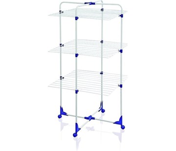 sušící plocha 27 m, možnost umístění do sprchového koutu, 3 patra,klip pro zavěšení dalších 6 ramínek, pro 3 pračky prádla, se 4 integrovanými kolečky pohyblivými do 360°,bílá, modrá