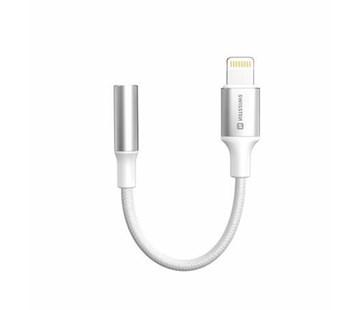 Audio adaptér SWISSTEN Textile LIGHTNING (samec) / 3,5mm AUX; Využití: Pro připojení sluchátek a reproduktorů k chytrým zařízením bez klasického audio jack vstupu; Textilní materiál; Délka 15 cm; Baleno v blistru SWISSTEN; barva bílá