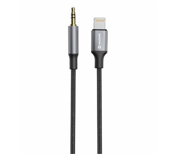 Audio adaptér SWISSTEN TEXTILE LIGHTNING (samec) / 3,5 mm JACK (samec) ; Využití propropojení sluchátek a reproduktorů k zařízením s konektory lighting; Textilní materiál; Délka 1,5 m; Baleno v blistru SWISSTEN; barva černá
