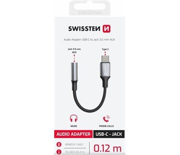 Audio adaptér SWISSTEN Textile USB-C (samec) / 3,5mm AUX; Využití: Pro připojení sluchátek a reproduktorů k chytrým zařízením bez klasického audio jack vstupu; Textilní materiál; Délka 15 cm; Baleno v blistru; barva bílá
