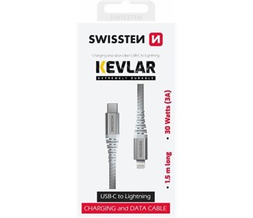datový kabel; Extrémně odolný; koncovky USB-C / LIGHTNING; vyztužený kevlarovým vláknem; délka 1,5m; výkon kabelu 60W (3A); baleno v blistru