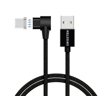 Datový a nabíjecí kabel Swissten Arcade Magnetic je dlouhý 1,2 m a má konektor do L pro pohodlné nabíjení při hraní her nebo sledování videa.