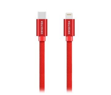 Popis a parametry Swissten kabel Textile USB-C/LIGH 1,2m, červená