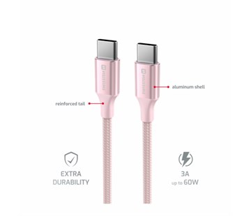 datový kabel; koncovky USB-C / USB-C; Rychlost přenosu dat 480 Mb/s; Proud až 3A; dobíjecí výkon 60 W; textilní opletení; Délka 1.5 m; Baleno v blistru